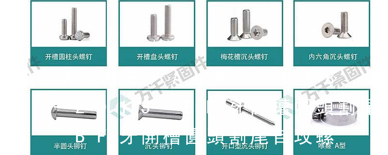 1、自攻螺釘?shù)穆萁z一般為機螺紋,而 自擠螺釘采用自攻螺紋。 2、在扳擰方式中, 自擠為確保高速自動采用了裝配扳手,而自攻螺釘采用開槽。 螺釘型號如下: (1)十字槽盤頭自攻螺釘:GB/T6560,ASME B18.6.4,SAE J81,? SAE J81。 (2 (鐵板牙自攻螺絲) B-2: Plastic Tapping Screw. (塑膠用,自攻螺絲) C: Wooden Screw : 木工螺絲 D: Drywall Screw :水泥墻螺絲 E: Self Drilling Screws鉆尾螺絲(不銹鋼鉆尾螺絲,復合材料鉆尾螺絲) F:膨脹螺絲,四片膨脹螺絲又